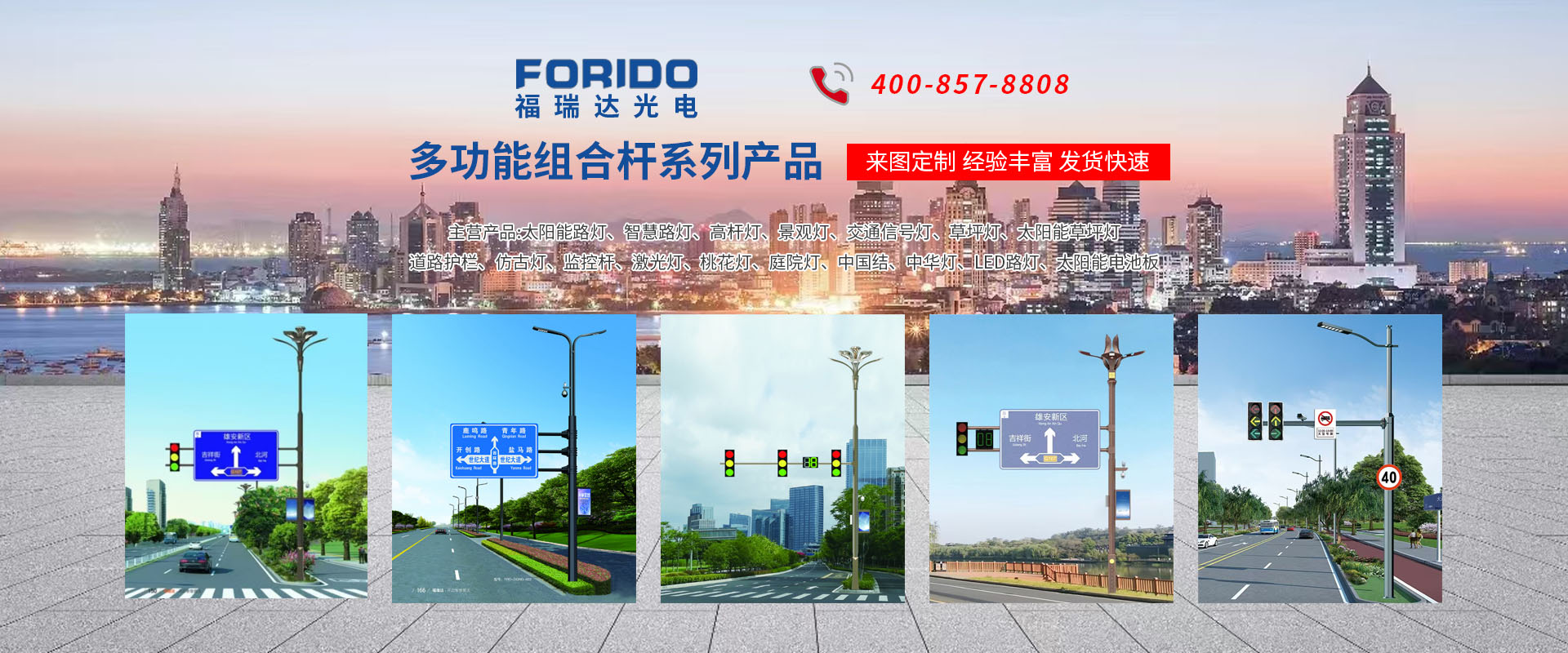 揚(yáng)州福瑞達(dá)光電科技有限公司位于淮左名都?xì)v史文化名城、中國路燈制造基地?fù)P州市北郊菱塘工業(yè)園,公司占地面積76000平方米,注冊資金10518萬元,擁有高級技術(shù)嫻熟的員工280多人,擁有大型折彎機(jī)、激光切割、數(shù)控注塑機(jī)、壓鑄機(jī)、自動埋弧焊、氣焊、彩色粉末靜電噴塑等大型自動化設(shè)備,我公司是一家集設(shè)計、研發(fā)、生產(chǎn)、銷售、施工安裝服務(wù)為一體的戶外交通照明產(chǎn)品制造商,主要生產(chǎn)智慧路燈、太陽能路燈、LED路燈、高桿燈、景觀燈、交通信號燈、交通標(biāo)志牌、通信鐵塔、路跨鋼結(jié)構(gòu)、公交站臺、太陽能光伏組件、景點(diǎn)亮化、樓宇亮化工程的設(shè)計施工等。公司秉承開拓創(chuàng)新、銳意進(jìn)取、精誠服務(wù)的企業(yè)精神,堅持以“誠信為本、技術(shù)為先、服務(wù)是金”的合作理念,我們憑借先進(jìn)的制造工藝、優(yōu)質(zhì)的產(chǎn)品質(zhì)量、合理的市場價格和完善的售后服務(wù)贏得了廣闊的市場和客戶的信賴。 我公司已通過ISO9001質(zhì)量體系認(rèn)證、ISO14001環(huán)境管理體認(rèn)證,CQC產(chǎn)品認(rèn)證,中國節(jié)能產(chǎn)品認(rèn)證,通過“CCC”強(qiáng)制性產(chǎn)品認(rèn)證,具有市政總承包,照明,交安,設(shè)計等資質(zhì)···